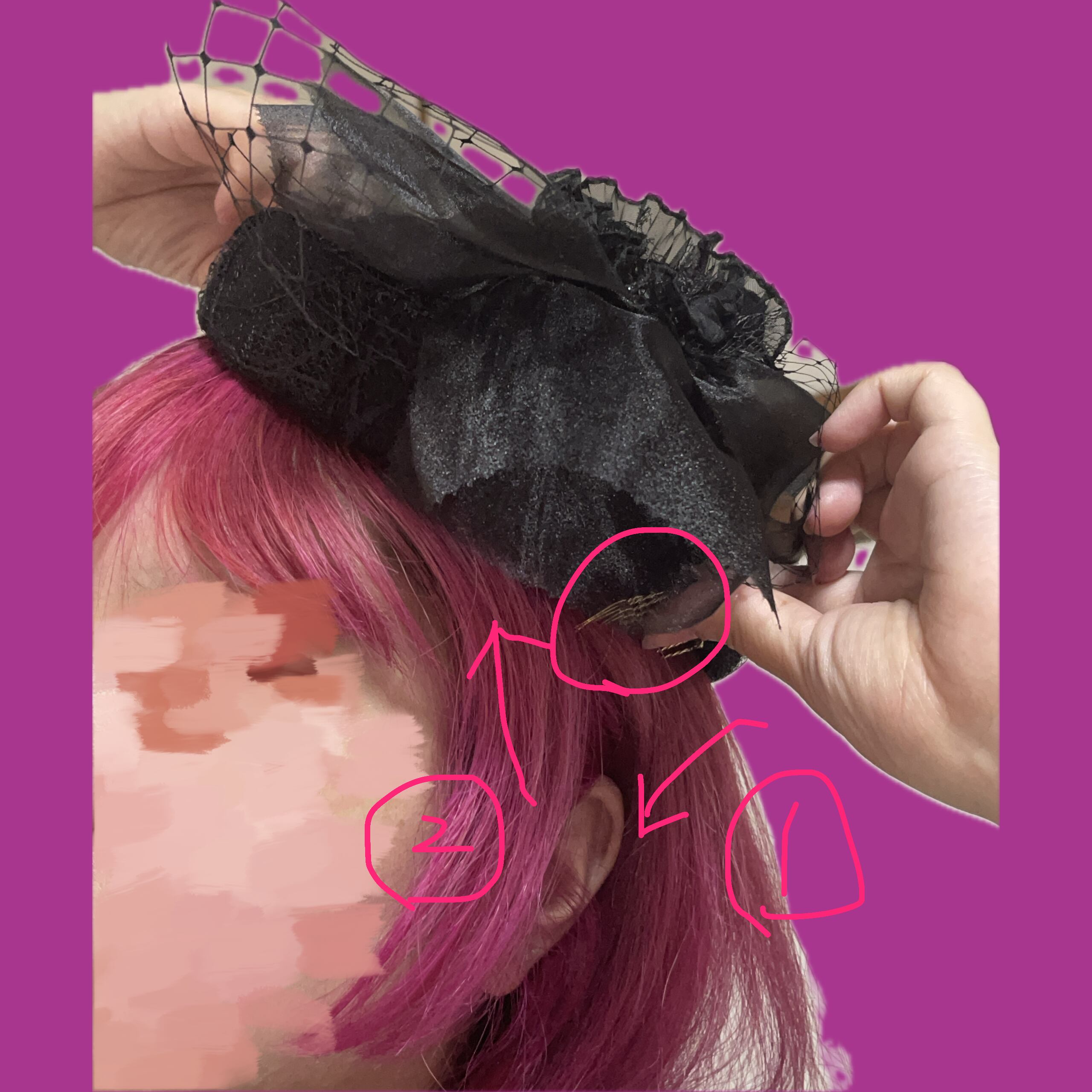 ウィッグのようにコームを差し込む要領でお好きな位置に装着してください。